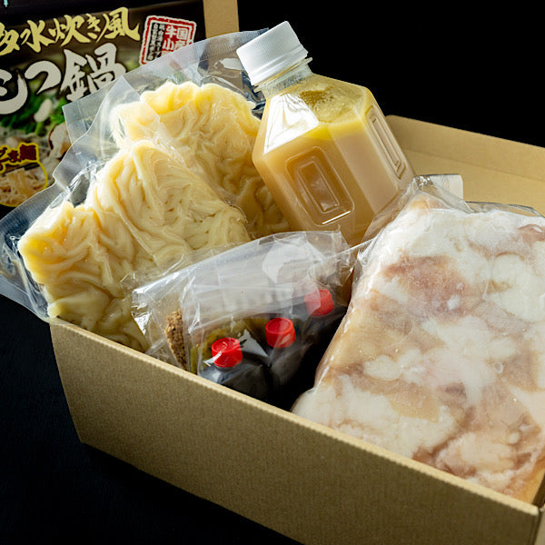博多水炊き風もつ鍋セット2~3人前(野菜なし/化粧箱入り)